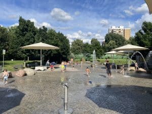 學期完結當天是星期五,爸爸的工作在星期五下午通常都比較輕鬆,因為其他德國人同事在15:00-16:00已經Happy Weekend! Schönes Wochenende!所以帶女兒去玩水,不是到游泳池游水,而是到一個免費的玩水公園 Wasserspielplatz Nidda Park,於夏天才能玩的全新體驗。